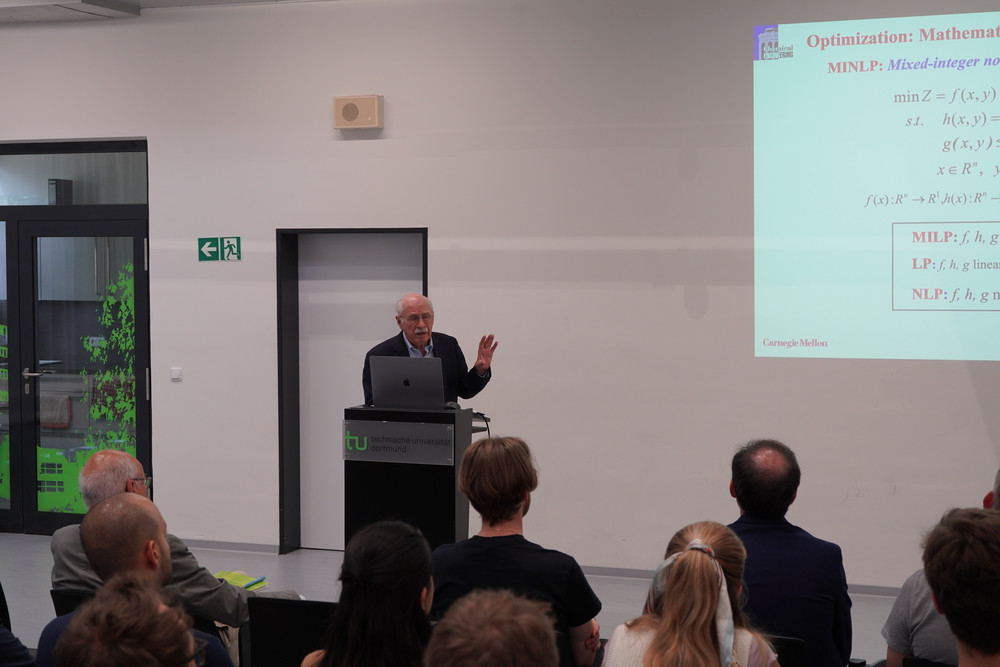 Prof. Grossmann delivered a lecture entitled “Optimal Synthesis and Planning of Sustainable Chemical Processes and Energy Systems”, presenting recent advances in optimization models and algorithms. His talk covered a broad spectrum of applications, including: